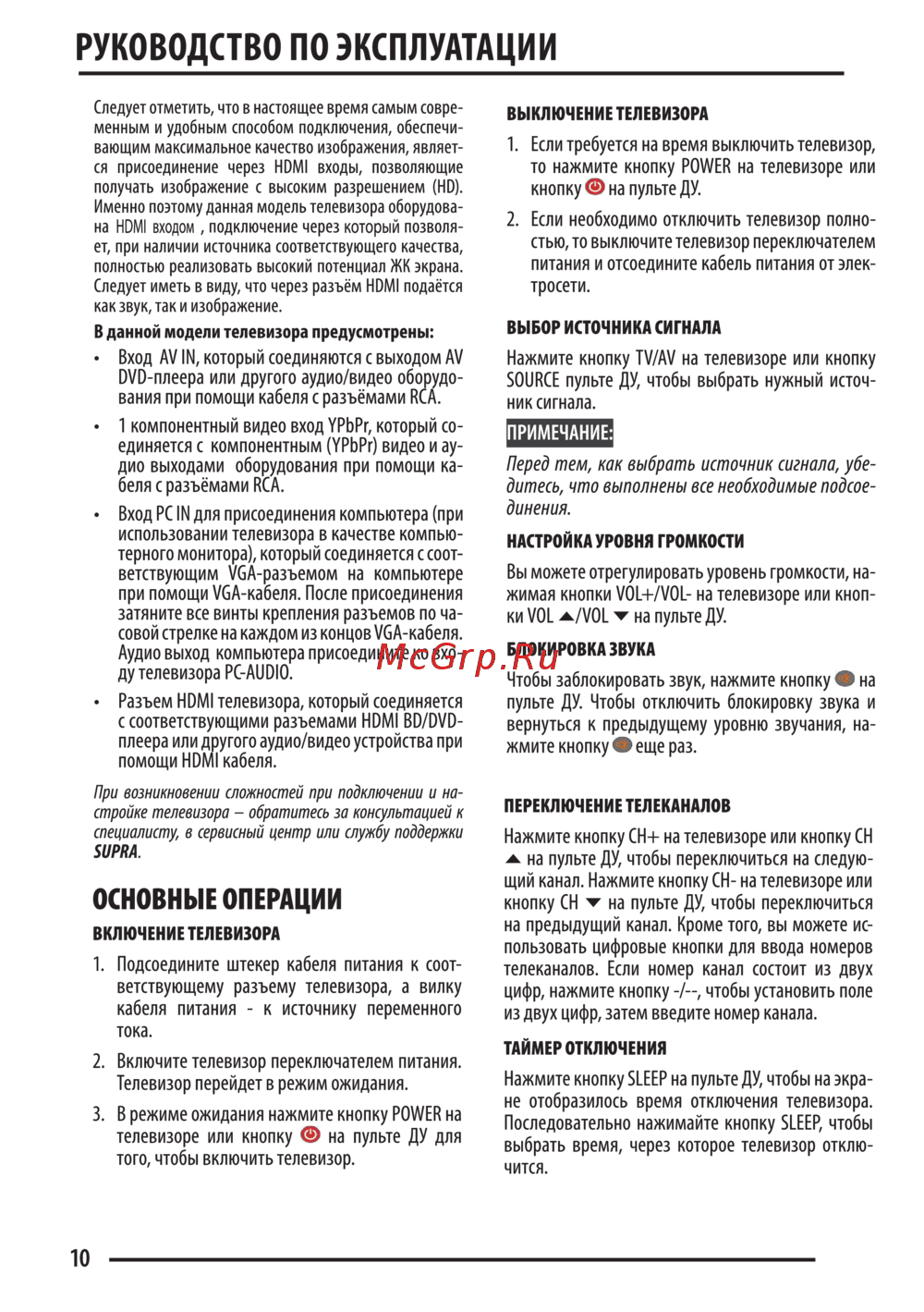 Supra STV-LC24500WL Инструкция по эксплуатации онлайн [10/24] 145960