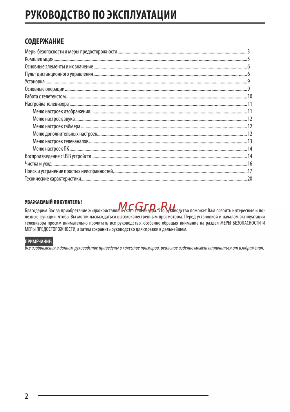 телевизора просим внимательно прочитать все руководство, особенно обращая внимание на раздел МЕРЫ БЕЗОПАСНОСТИ И