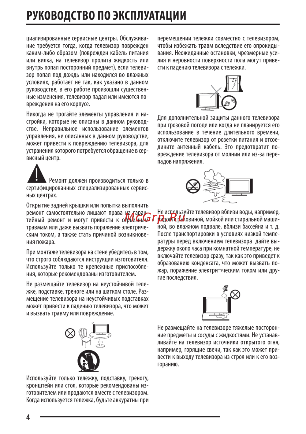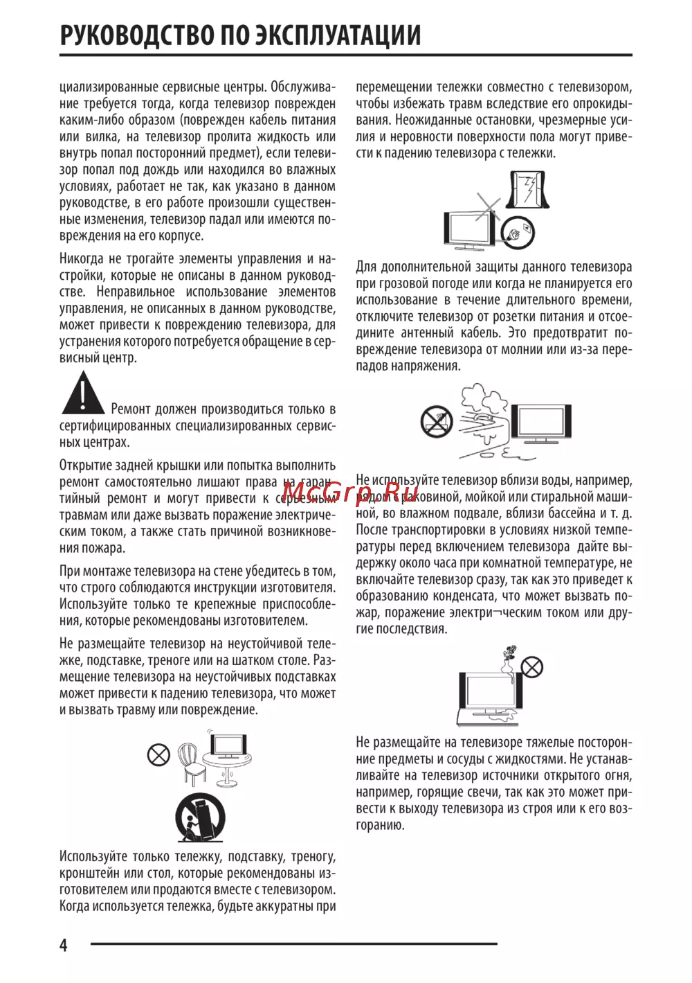 Supra STV-LC24500WL — руководство эксплуатации телевизора: ремонт, обслуживание и безопасность [4/24]