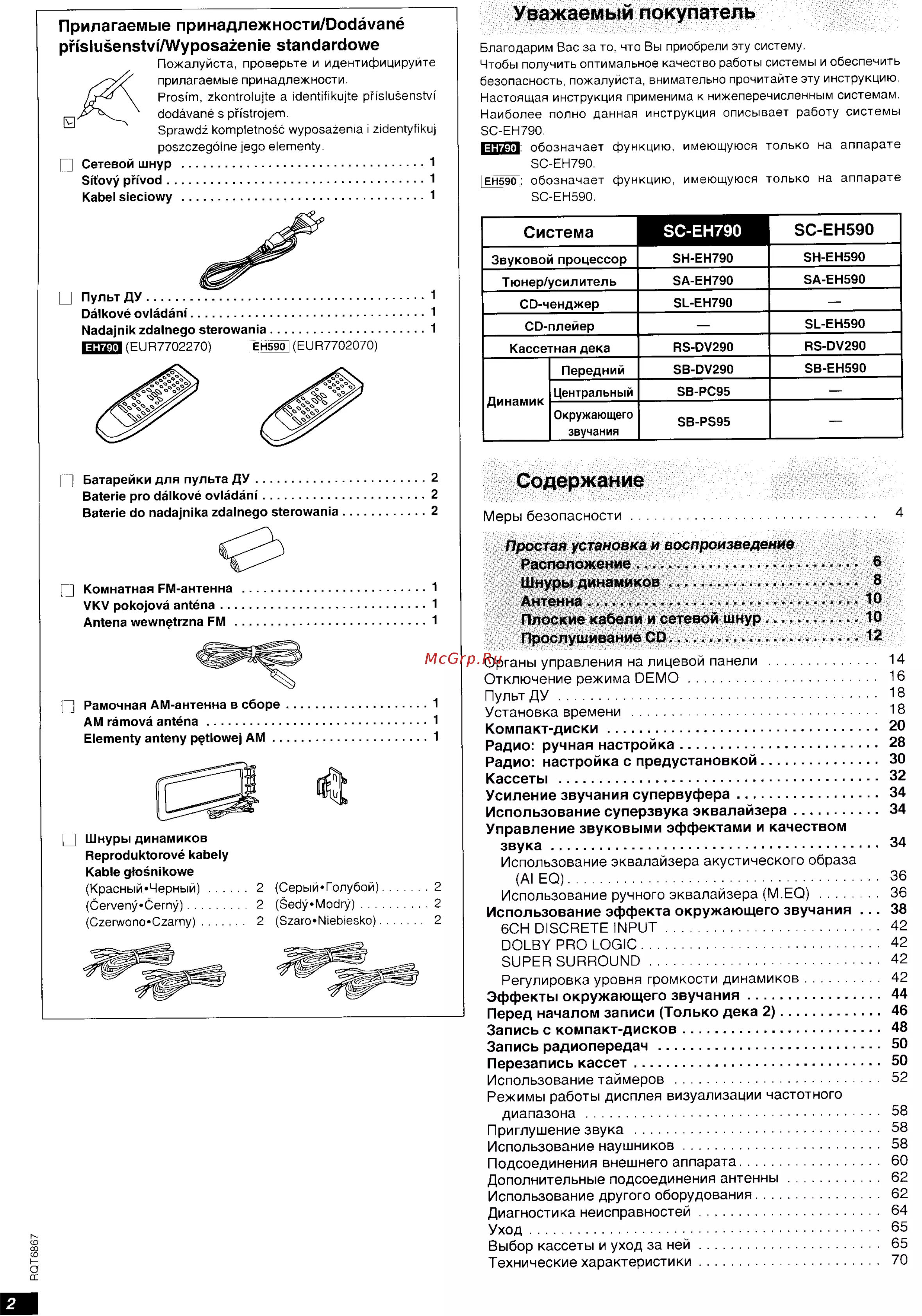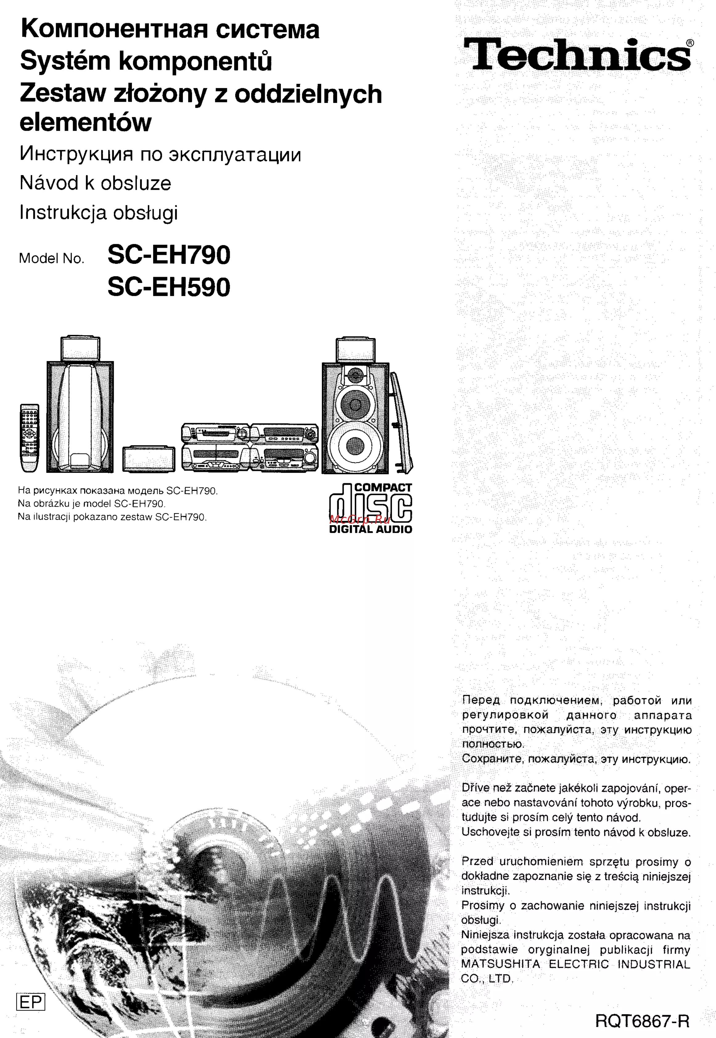 Компонентная система System komponentu Zestaw ztozony z oddzielnych elementow Technics9 Инструкция по эксплуатации Nävod k obsluze Instrukcja obslugi Model No SC EH790 SC EH590 На рисунках показана модель SC EH790 Na obräzku je model SC EH790 Na ilustracji pokazano zestaw SC EH790 DIGITAL AUDIO Перед подключением работой или регулировкой данного аппарата прочтите пожалуйста эту инструкцию полностью Сохраните пожалуйста эту инструкцию Drive nez zacnete jakekoli zapojoväni operace nebo nastavoväni tohoto vyrobku prostudujte si prosim cely tento nävod Uschovejte si prosim tento nävod k obsluze Przed uruchömieniem sprz tu prosimy о doktadne zapoznanie sig z tresciq niniejszej instrukcji Prosimy о zachowanie niniejszej instrukcji obslugi Niniejsza instrukcja zostata opracowana na podstawie oryginalnej publikacji firmy MATSUSHITA ELECTRIC INDUSTRIAL CO LTD