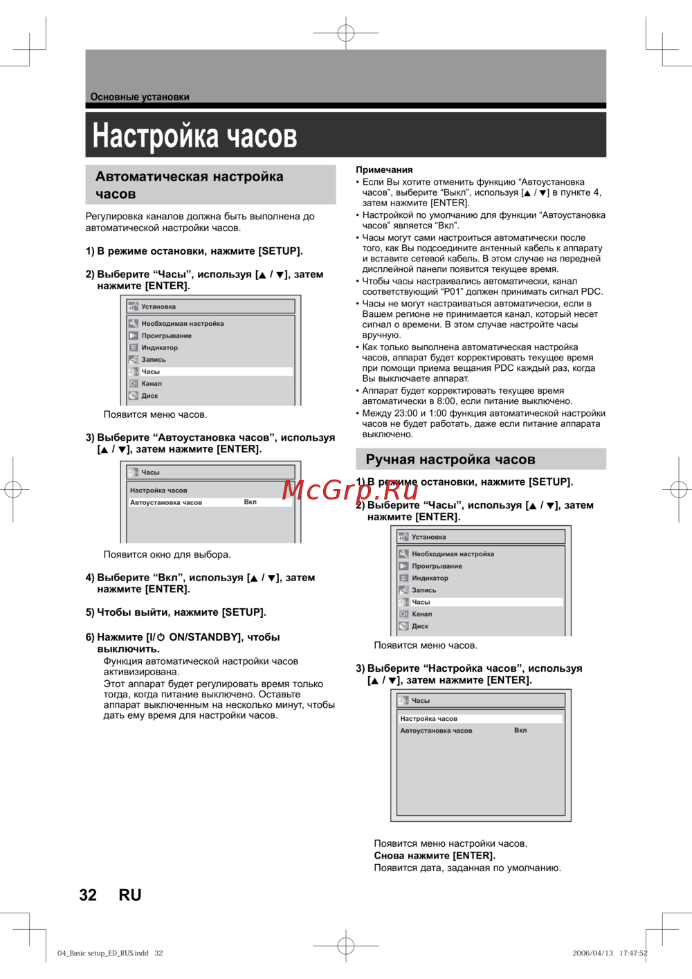 Toshiba D-R265 S/TR — настройка часов: автоматическая и ручная установка времени [32/66]