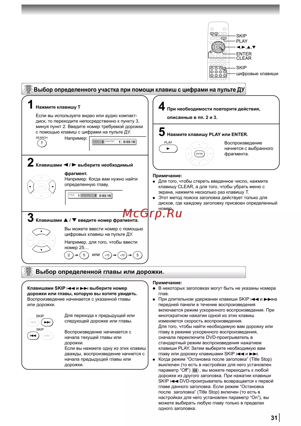 Toshiba SD-2950 S/TA — как выбрать дорожку или главу на DVD-проигрывателе [31/74]