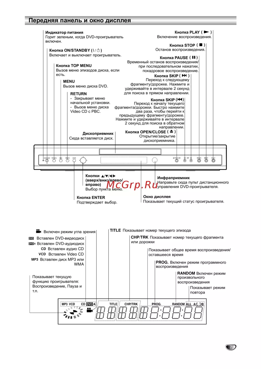 ![Toshiba SD-530 E-S [7/32] Передняя панель и окно дисплея](/views2/1160993/page7/bg7.png)