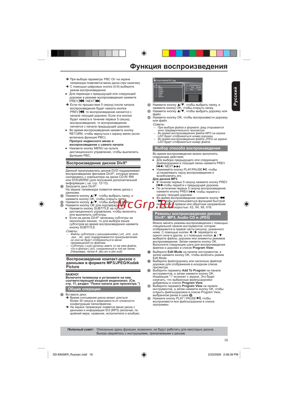 Toshiba SDK-600 KR — инструкция по воспроизведению дисков и файлов на проигрывателе [17/28]