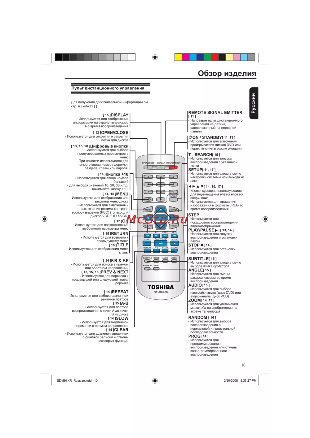Toshiba SD-591 K TR [11/26] Пульт дистанционного управления