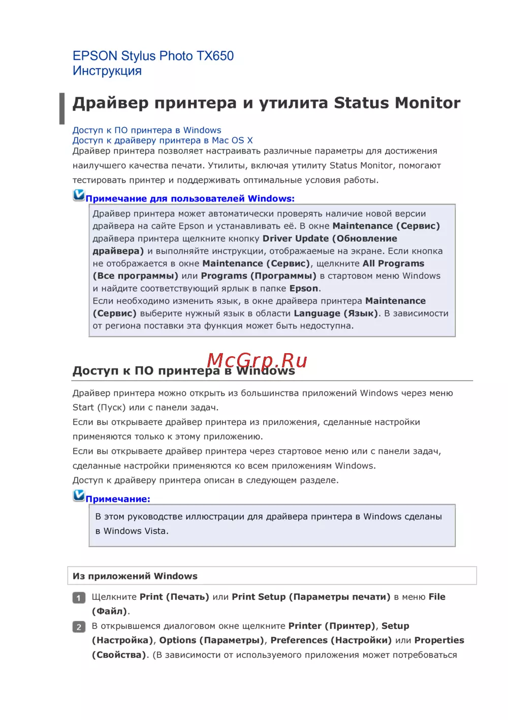 Epson Stylus TX650 — инструкция по настройке драйвера принтера и утилиты мониторинга [1/44]