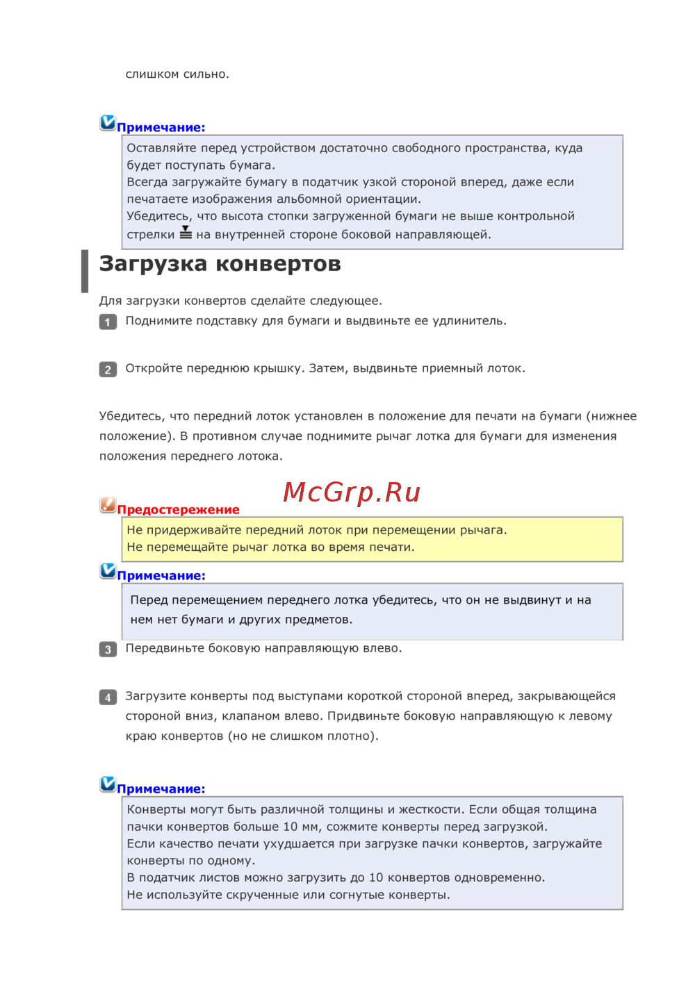 Узнайте, как правильно загружать бумагу и конверты в печатающее устройство. Следуйте простым инструкциям для достижения наилучшего качества печати.