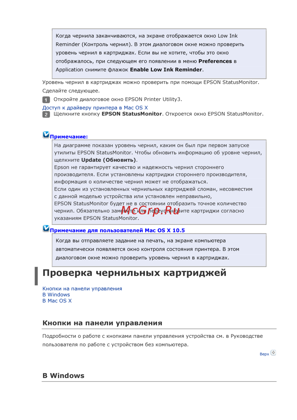 утилиты EPSON StatusMonitor. Чтобы обновить информацию об уровне чернил,