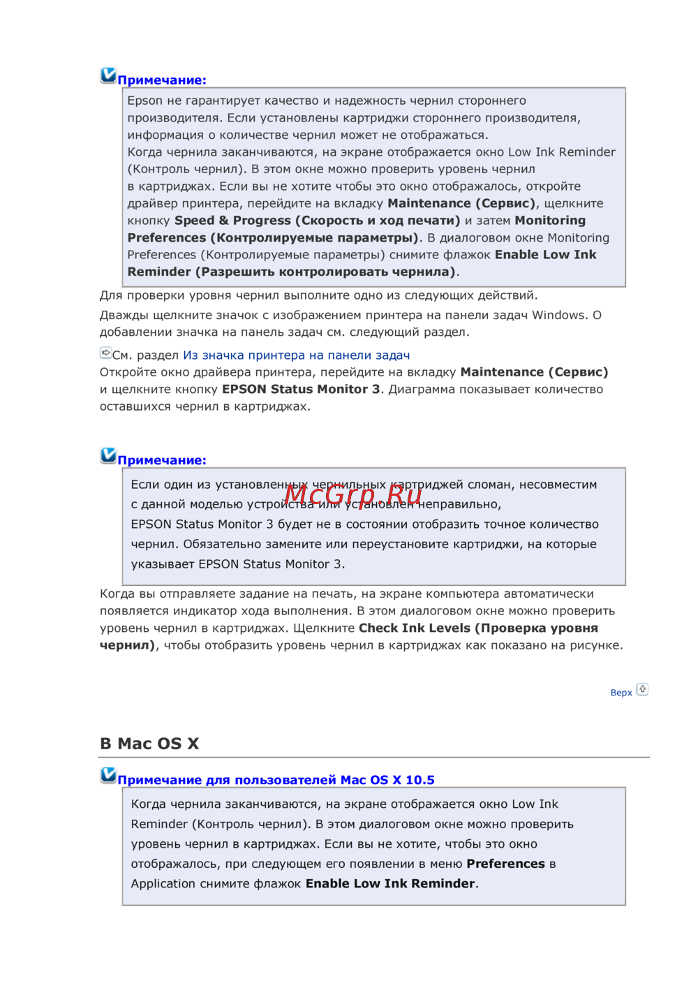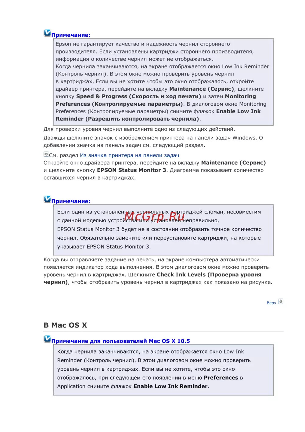 Примечание для пользователей Mac OS X 10.5