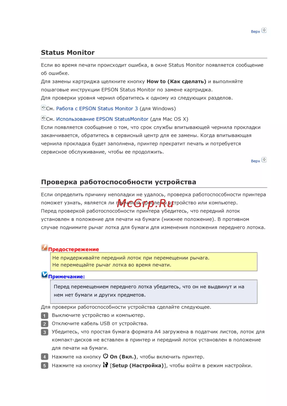 Epson Stylus TX650 — как использовать монитор статуса и проверка работоспособности принтера [37/44]