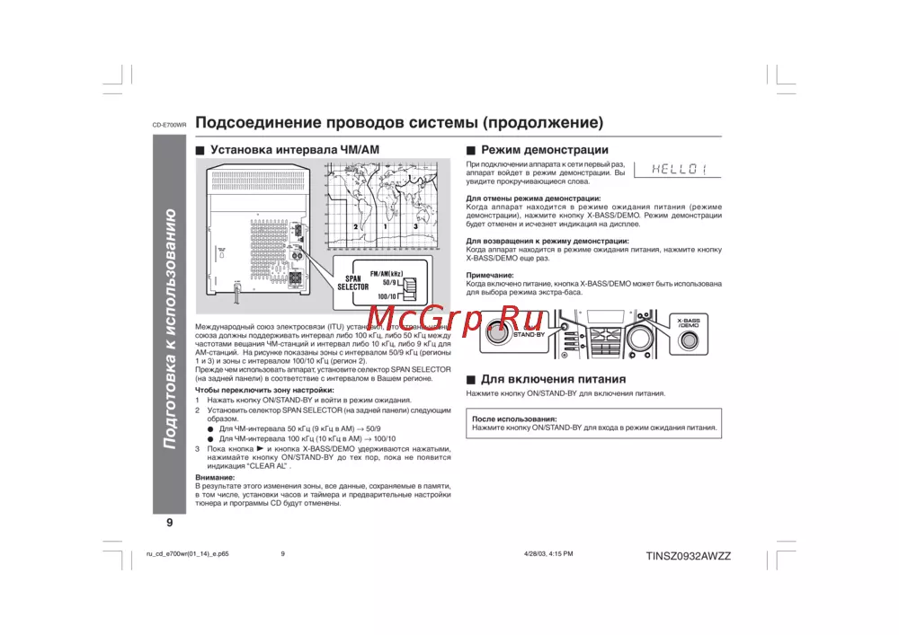 H Установка интервала ЧМ/АМ H Режим демонстрации