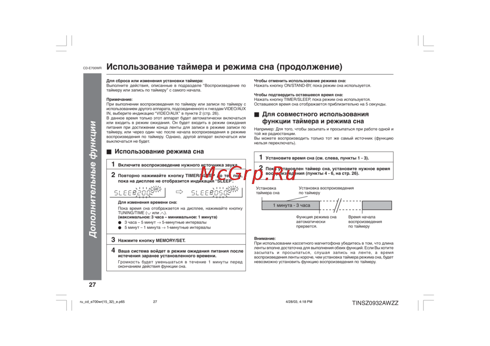 Sharp CD-E700WR — настройка таймера и режима сна для аудиосистемы [30/36]