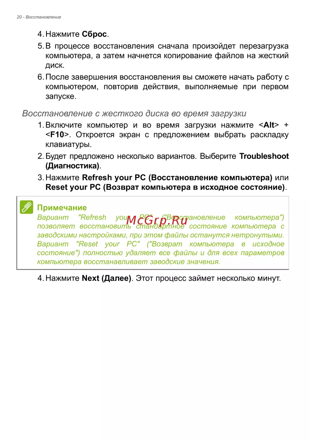 Acer aspire z3-710, dq.b04er.002 [20/72] Восстановление с жесткого диска во время загрузки