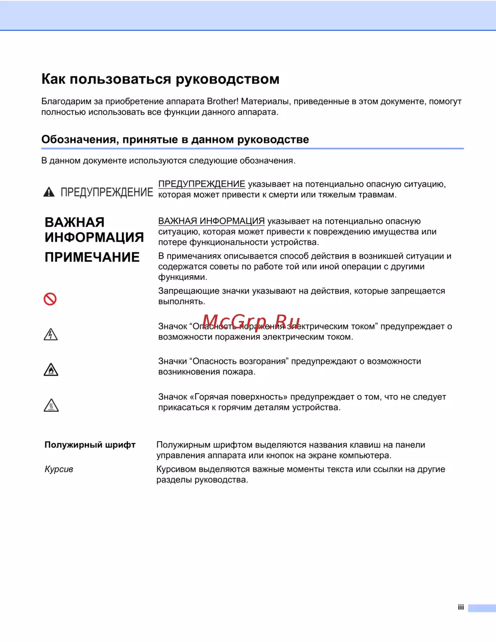 - Обозначения принятые в данном руководстве p.4
