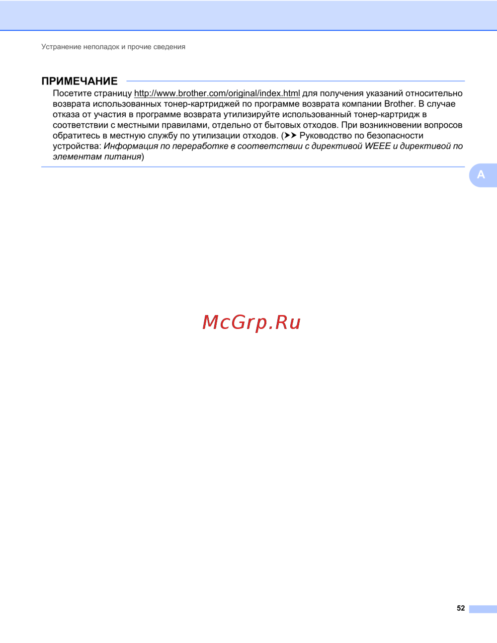 возврата использованных тонер-картриджей по программе возврата компании Brother. В случае