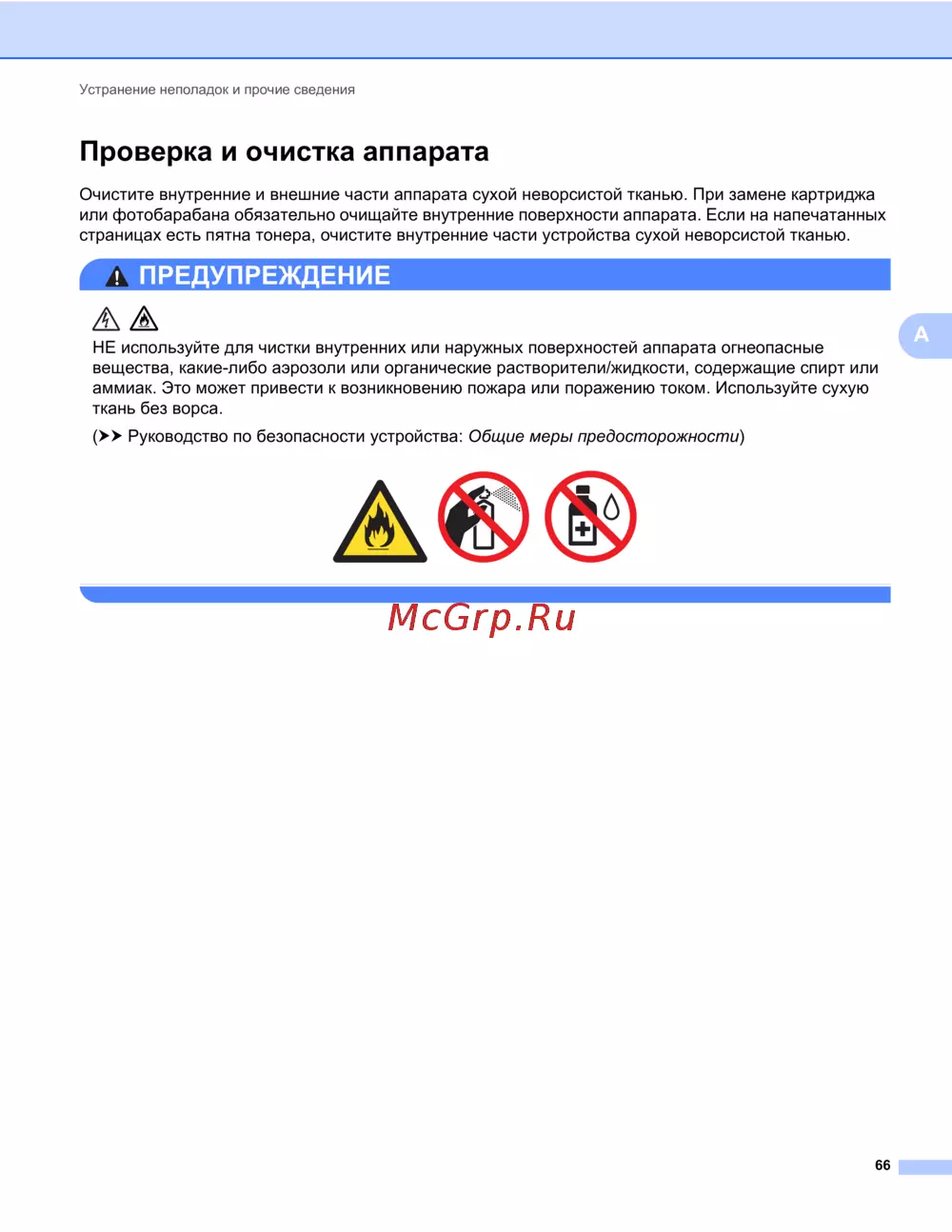 НЕ используйте для чистки внутренних или наружных поверхностей аппарата огнеопасные