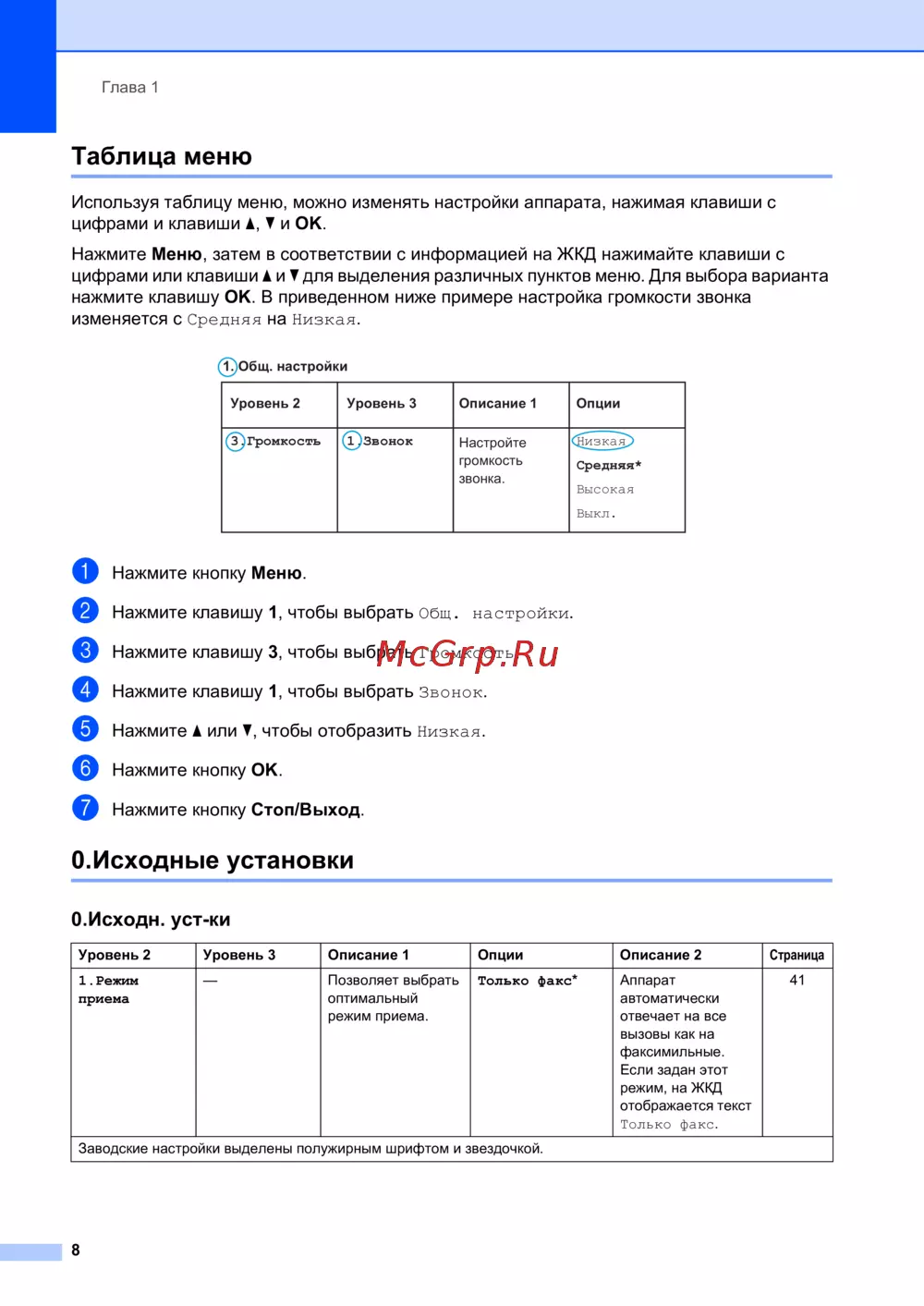 ![Brother MFC-1810R [16/103] Исходные установки](/views2/1124197/page16/bg10.png)