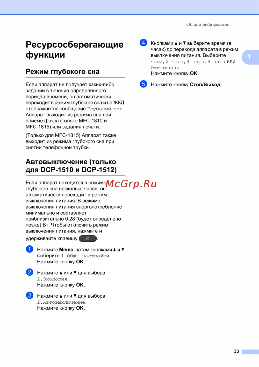 Brother dcp-1512r [41/103] Режим глубокого сна