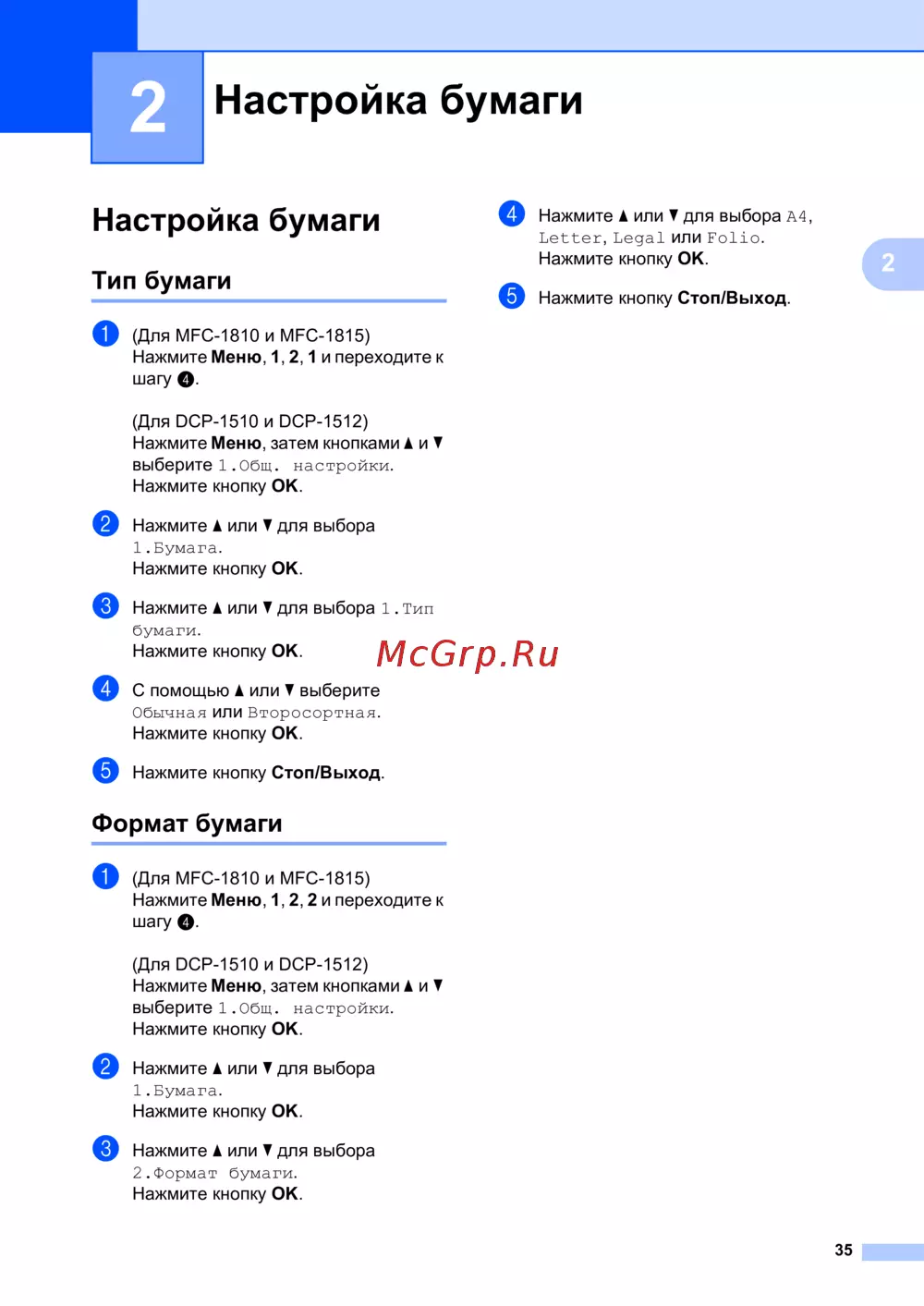 ![Brother dcp-1512r [43/103] Настройка бумаги](/views2/1124197/page43/bg2b.png)