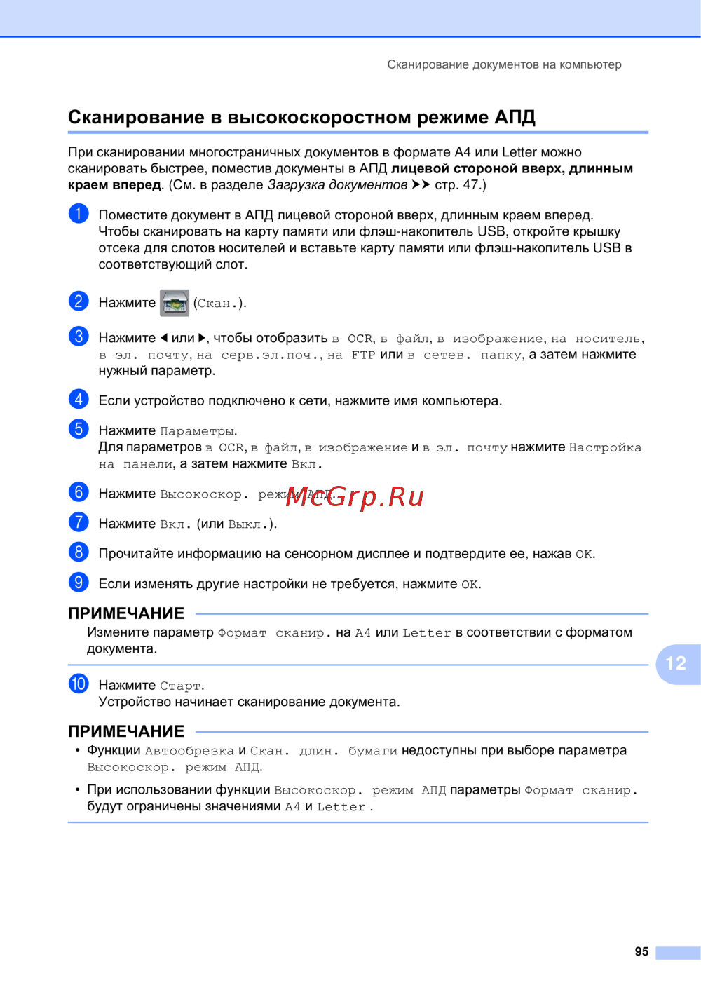 Brother mfc-j3520 [105/229] Сканирование в высокоскоростном режиме апд