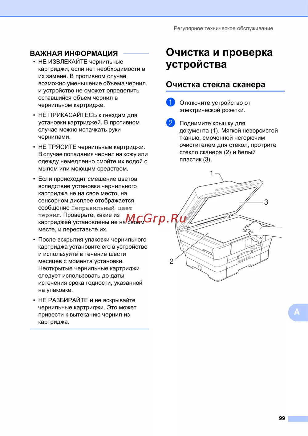 Brother mfc-j3520 — рекомендации по техническому обслуживанию чернильных картриджей [109/229]