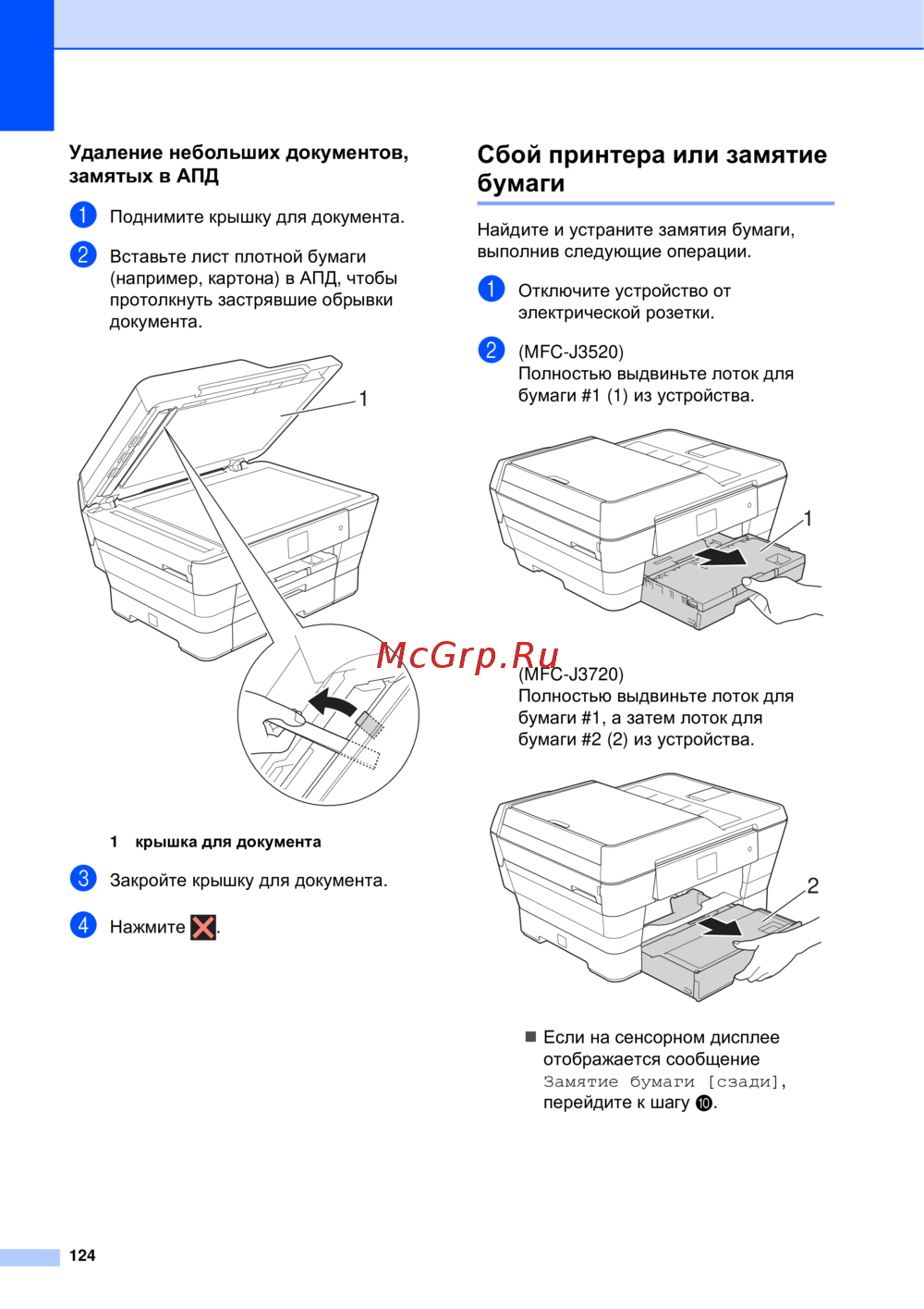 Brother mfc-j3520 — как устранить замятие бумаги и удалить документы из принтера [134/229]