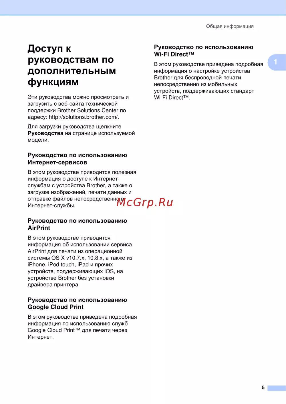 Узнайте, как получить доступ к руководствам по дополнительным функциям печати, включая использование интернет-сервисов и беспроводную печать с мобильных устройств.