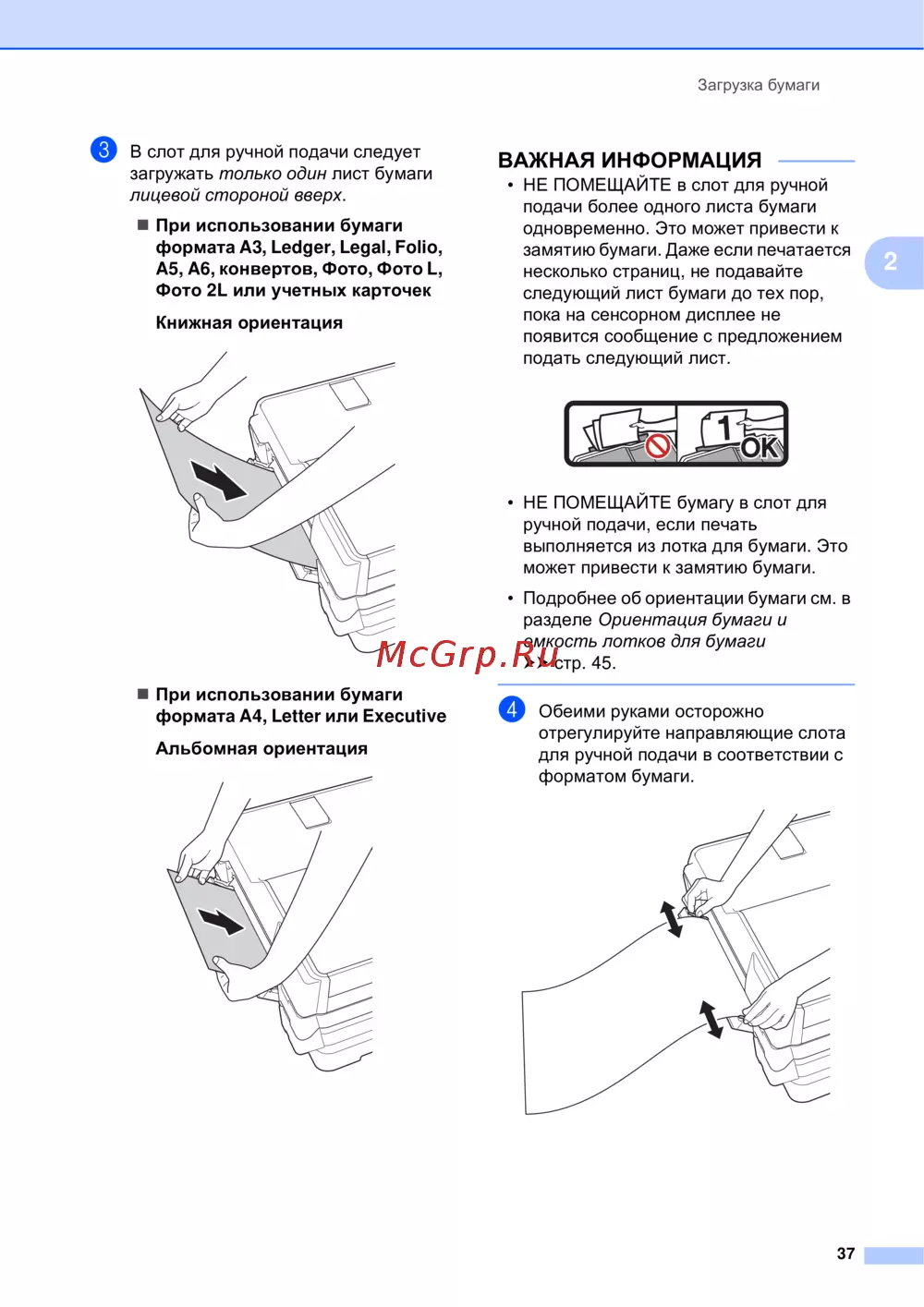 Brother mfc-j3520 — правила загрузки бумаги в слот для ручной подачи [47/229]