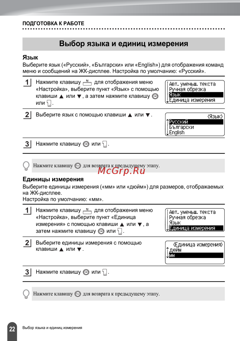 Brother pt-2700vp — настройка языка и единиц измерения – Инструкция [24/82]