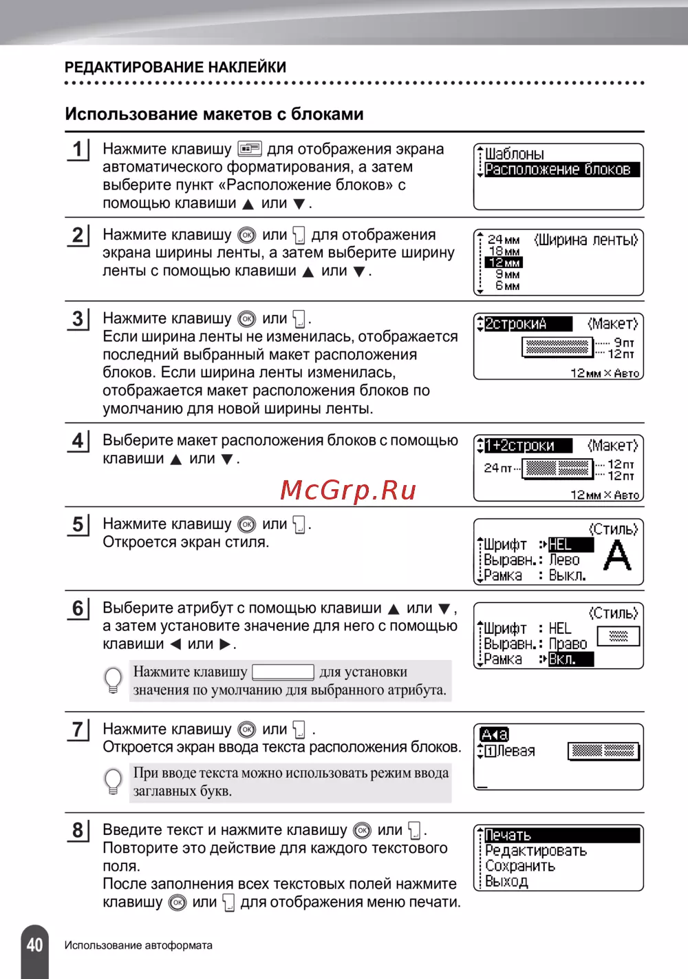 Brother pt-2700vp — инструкция по редактированию наклейки и автоформатированию [42/82]