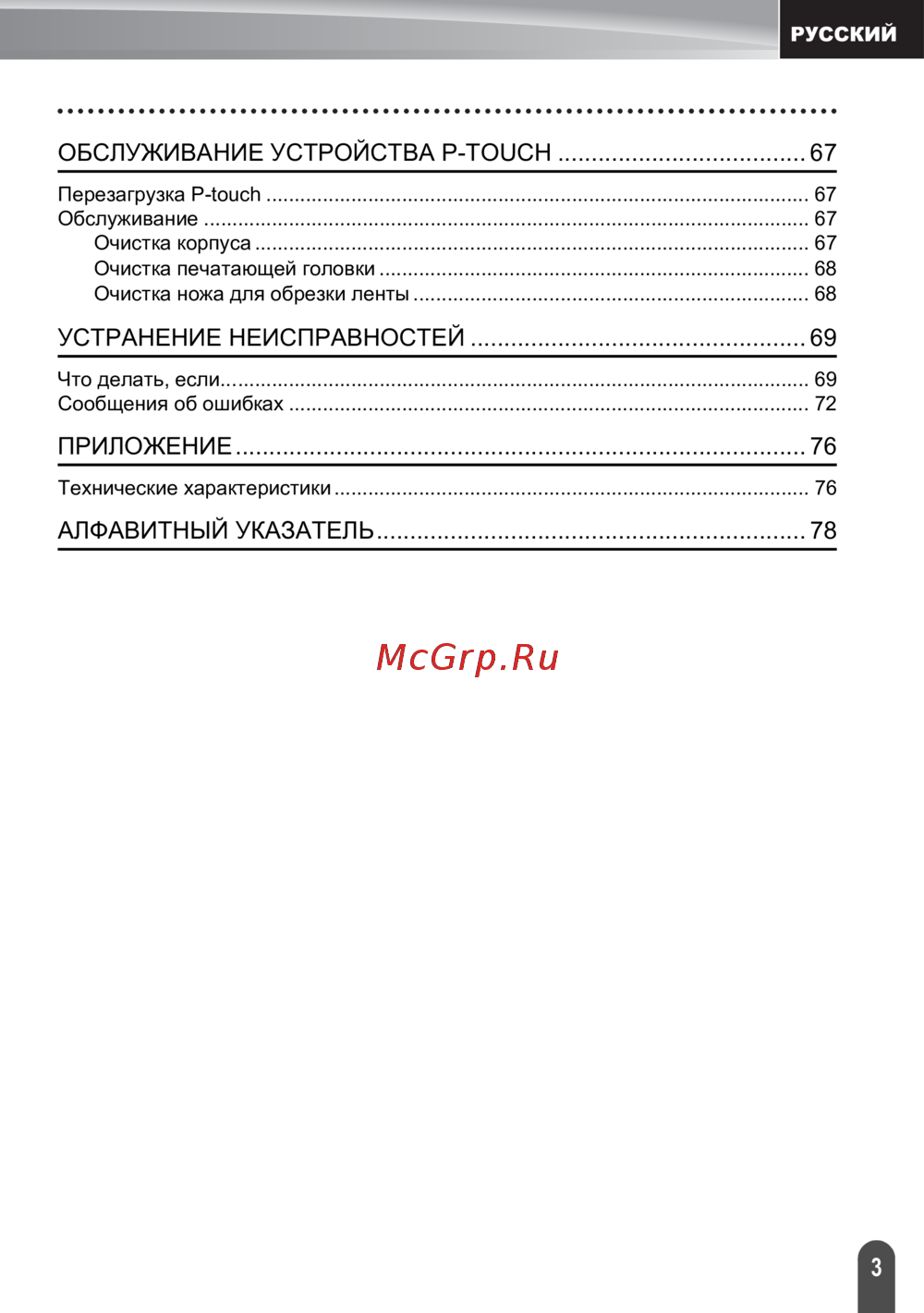 ОБСЛУЖИВАНИЕ УСТРОЙСТВА P-TOUCH ..................................... 67