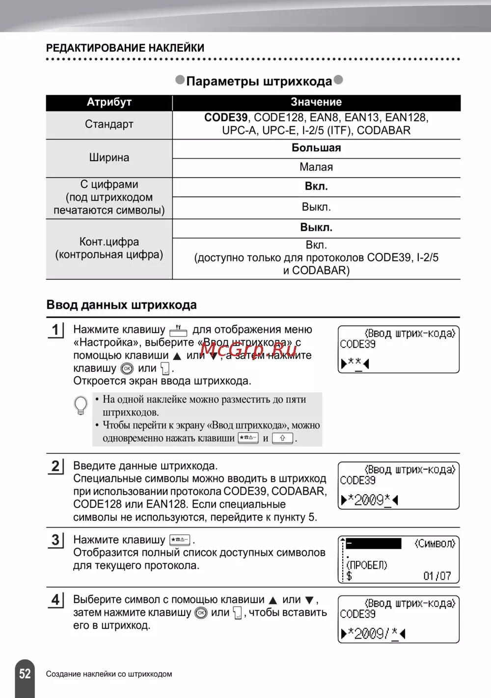 ![Brother pt-2700vp [54/82] Параметры штрихкод](/views2/1165270/page54/bg36.png)