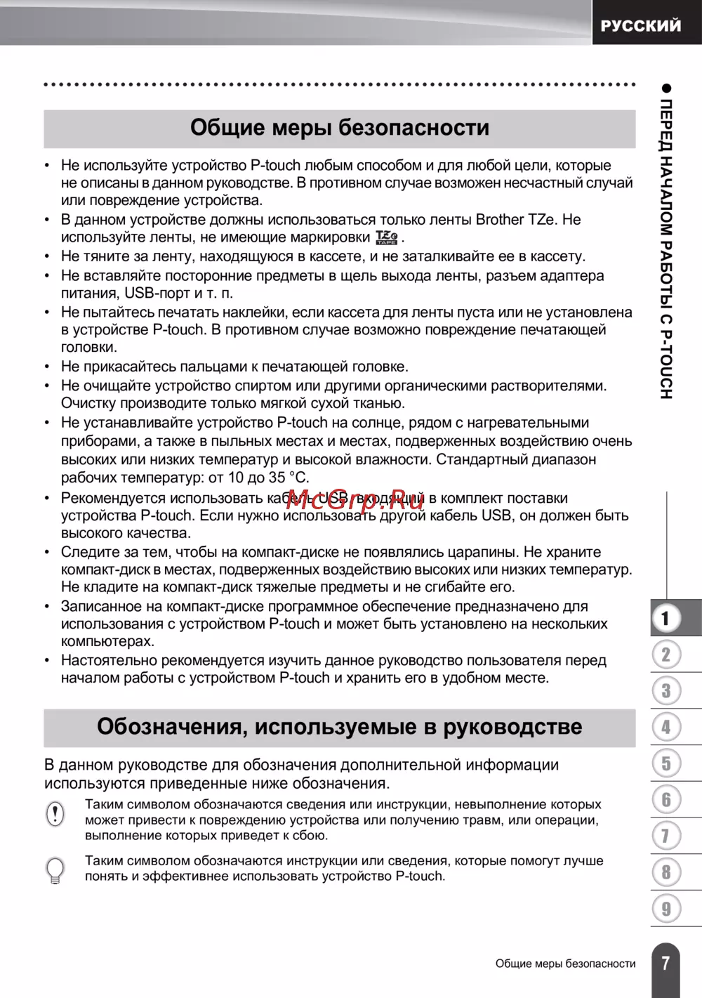 началом работы с устройством P-touch и хранить его в удобном месте.
