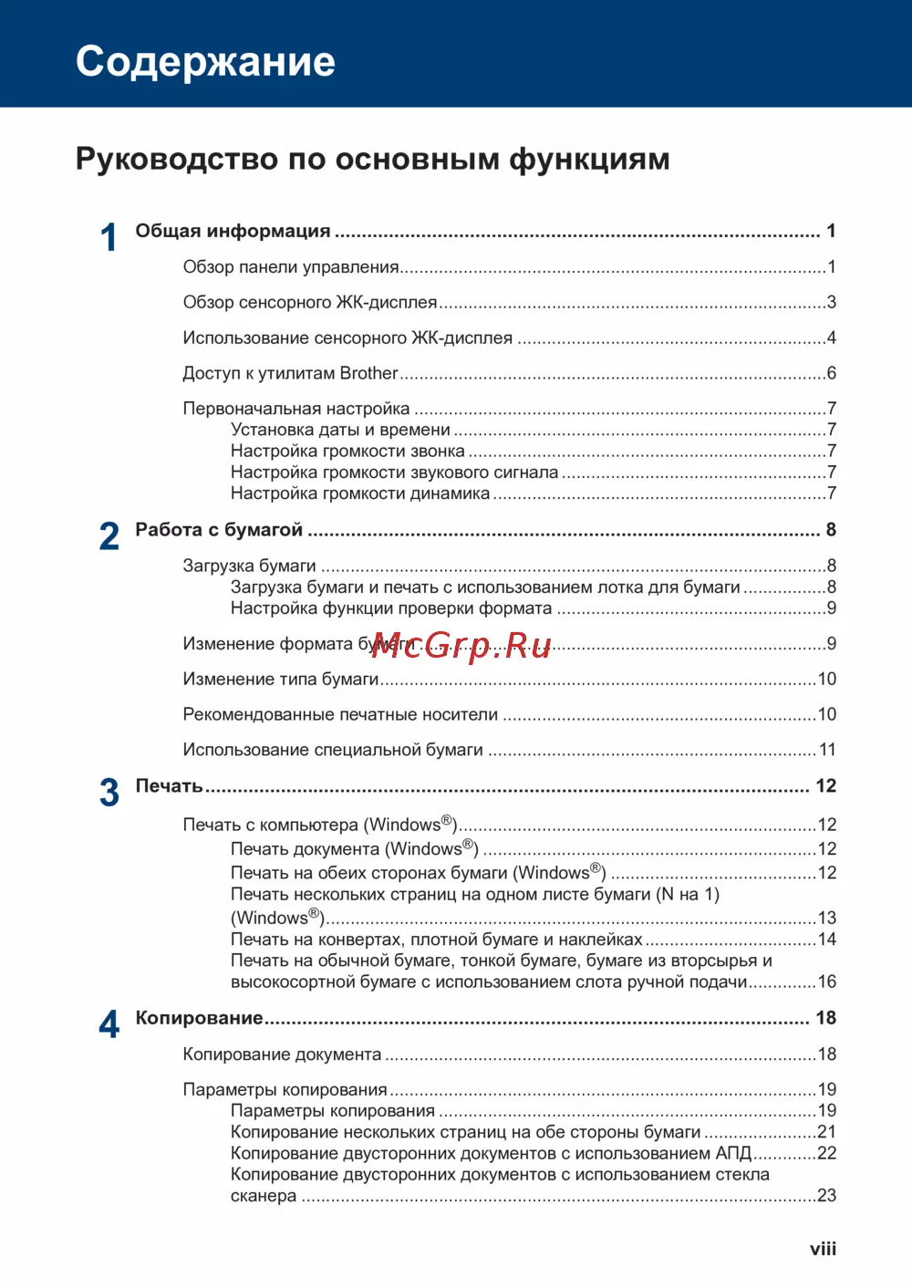 Загрузка бумаги .......................................................................................................8