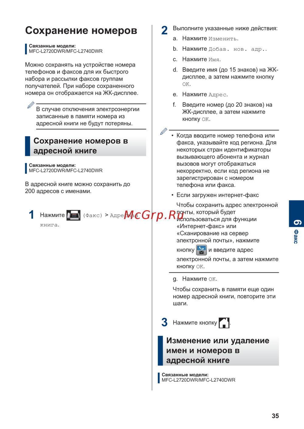 Brother MFC-L2740DWR — управление номерами телефонов и факсов в адресной книге MFC-L2720DWR/L2740DWR [47/78]