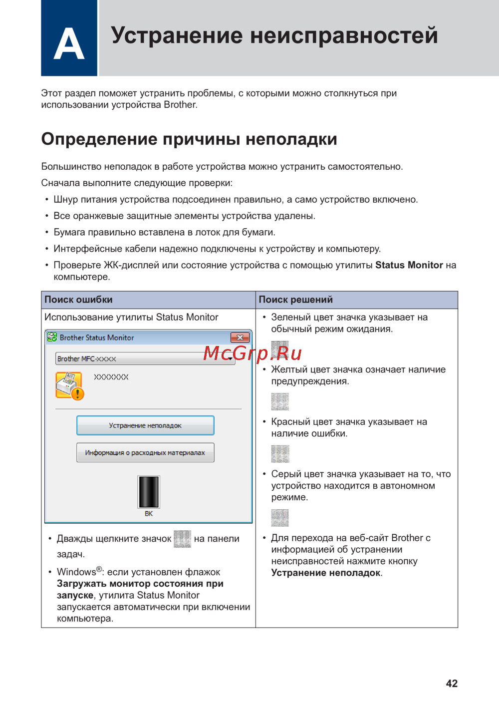 - Доступ к утилитам brother p.18
