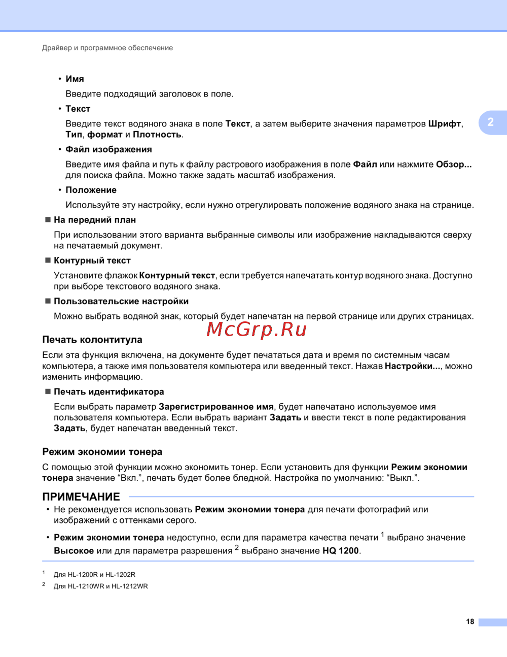 Brother hl-1212wr [26/85] Режим экономии тонера