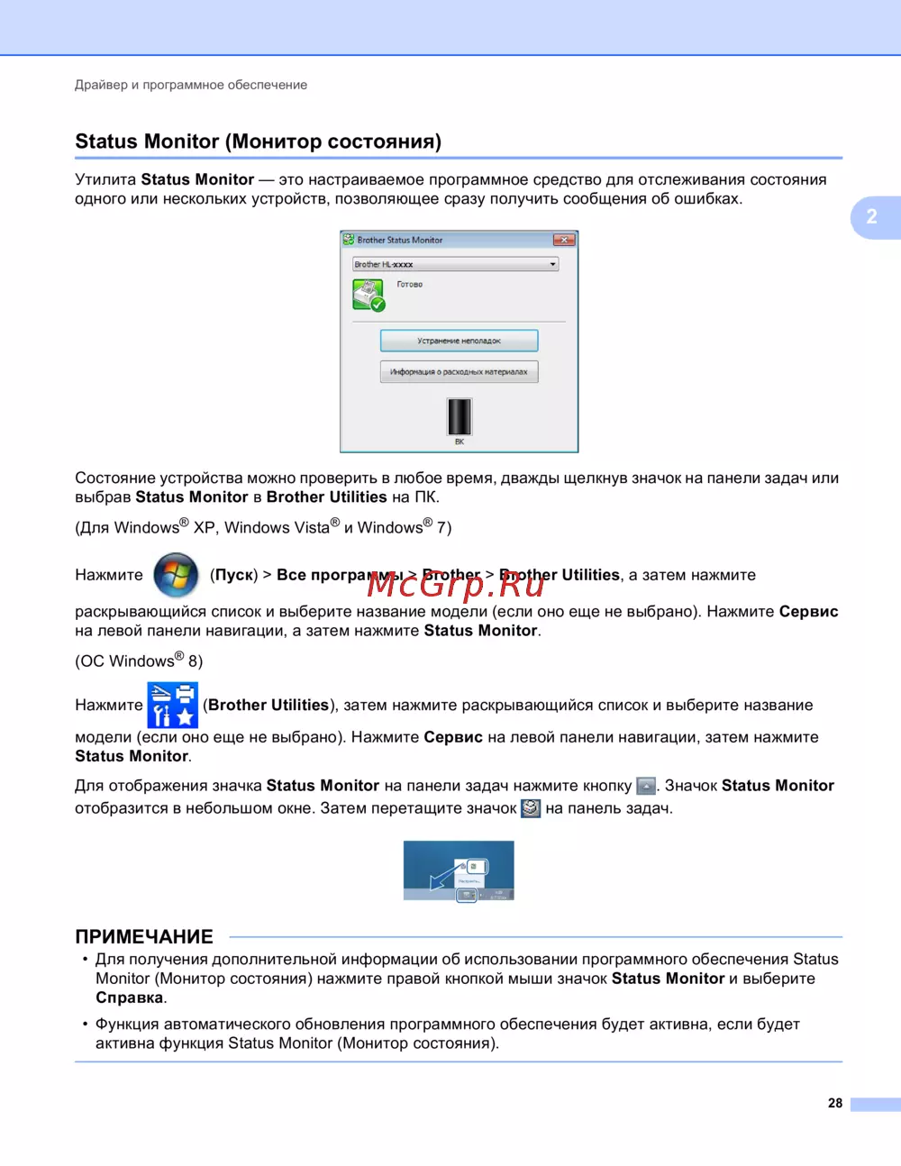 Утилита Status Monitor — это настраиваемое программное средство для отслеживания состояния