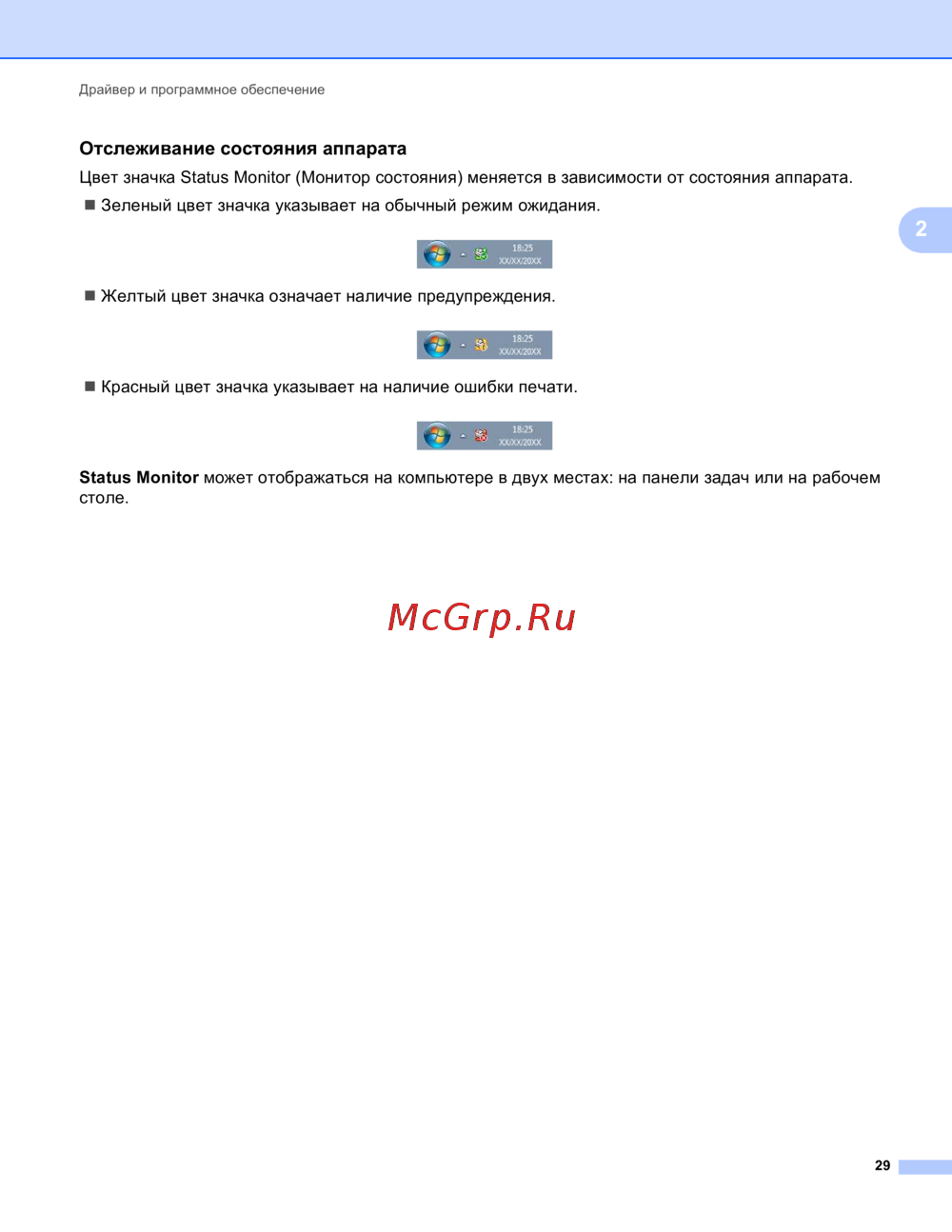 Status Monitor может отображаться на компьютере в двух местах: на панели задач или на рабочем