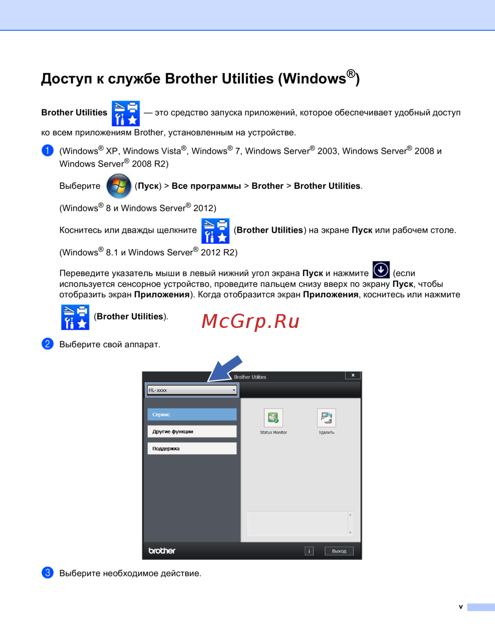 Brother hl-1212wr [6/85] Доступ к службе brother utilities window