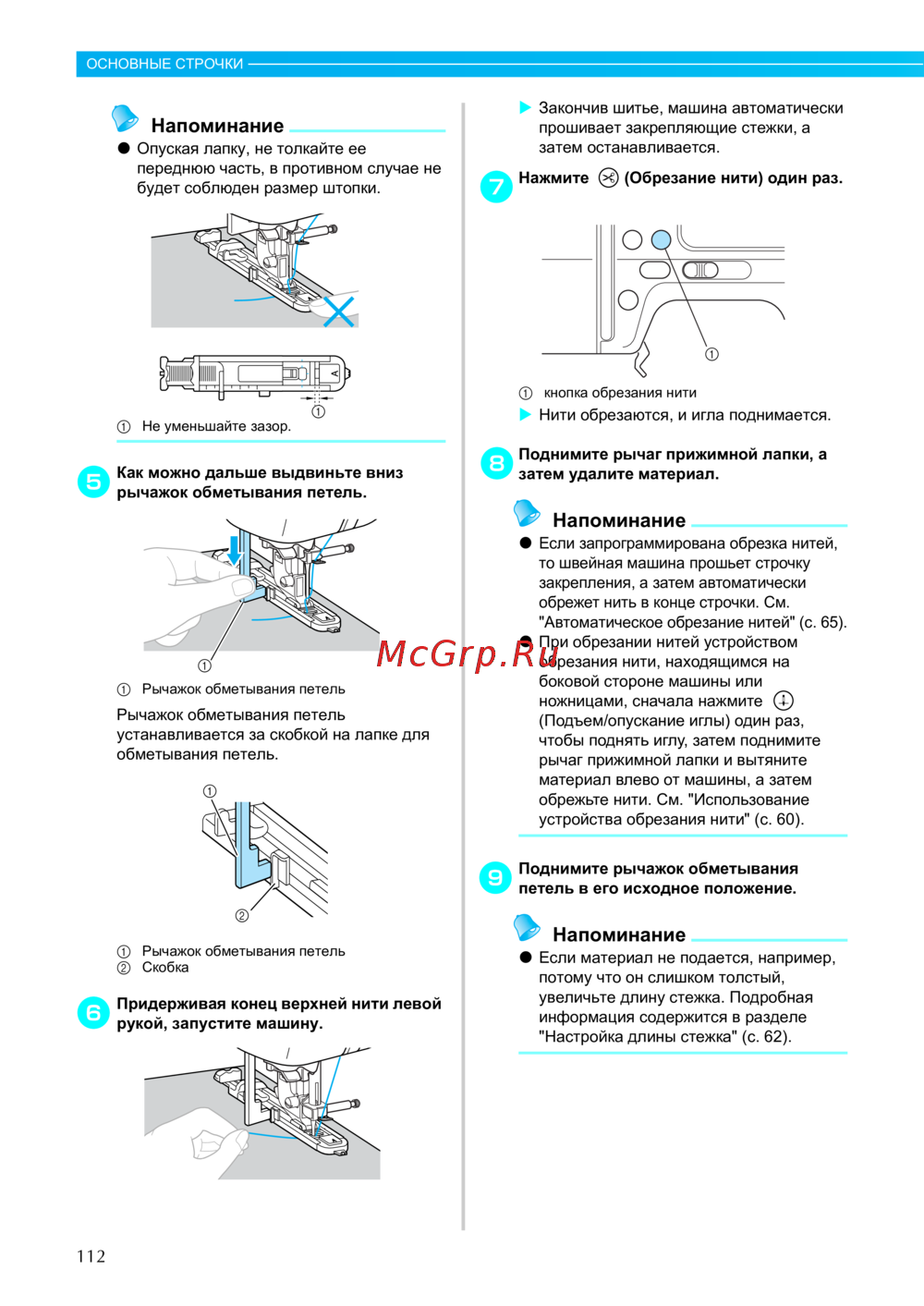 Brother NV 950 — основные инструкции по обметыванию петель на швейной машине [114/196]