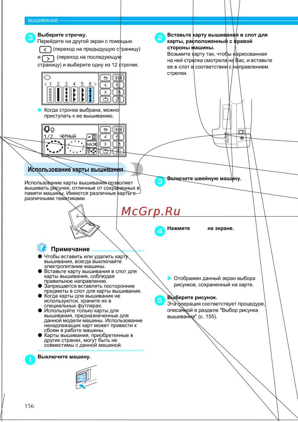 - Пересылка рисунков вышивания с компьютера на машину p.173