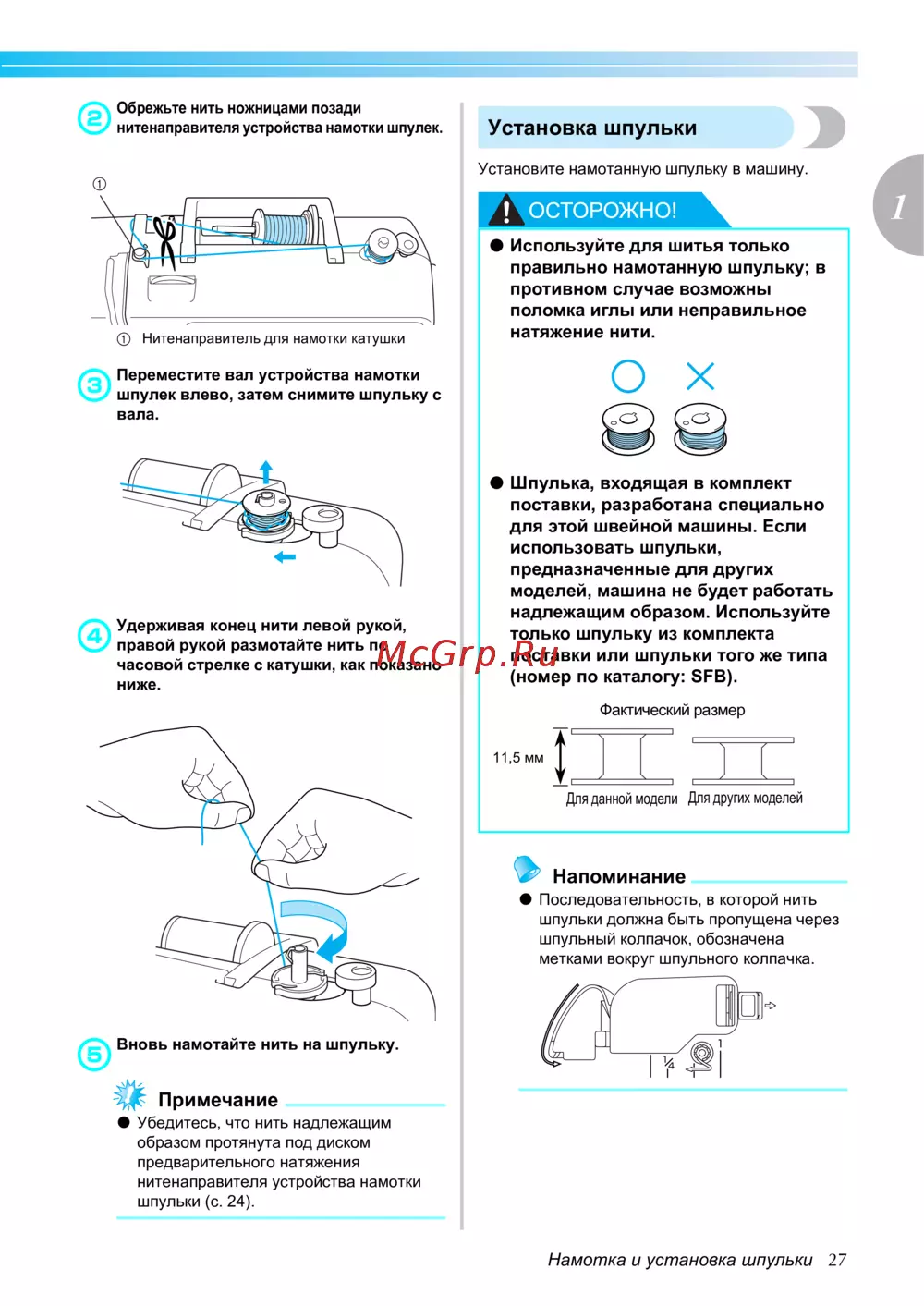 Brother NV 950 — как правильно намотать и установить шпульку для швейной машины [29/196]