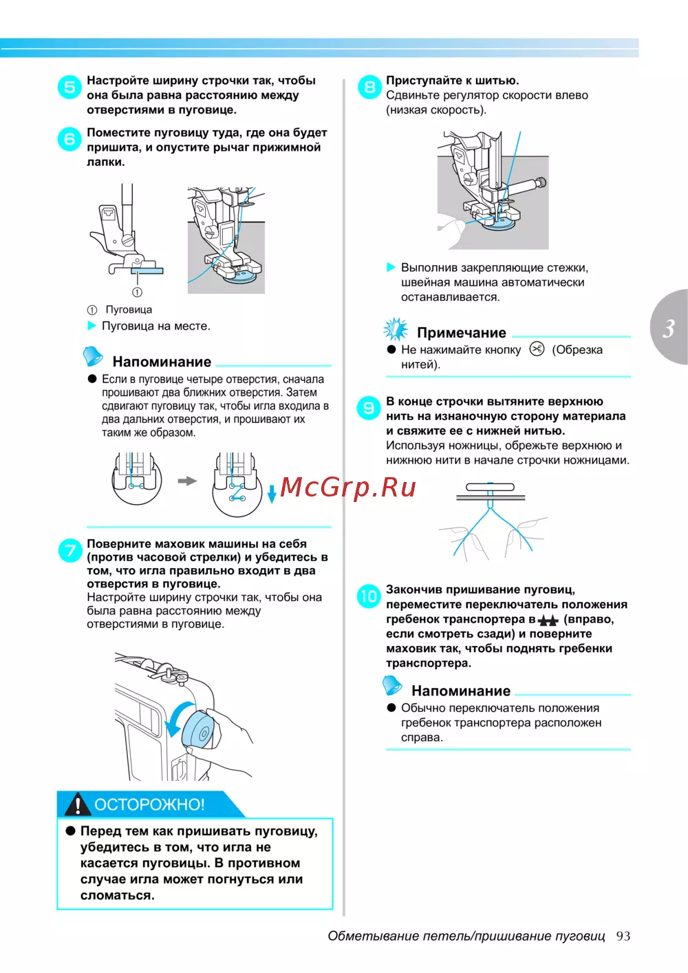 Brother NV 950 — как правильно пришивать пуговицы: пошаговая инструкция [95/196]