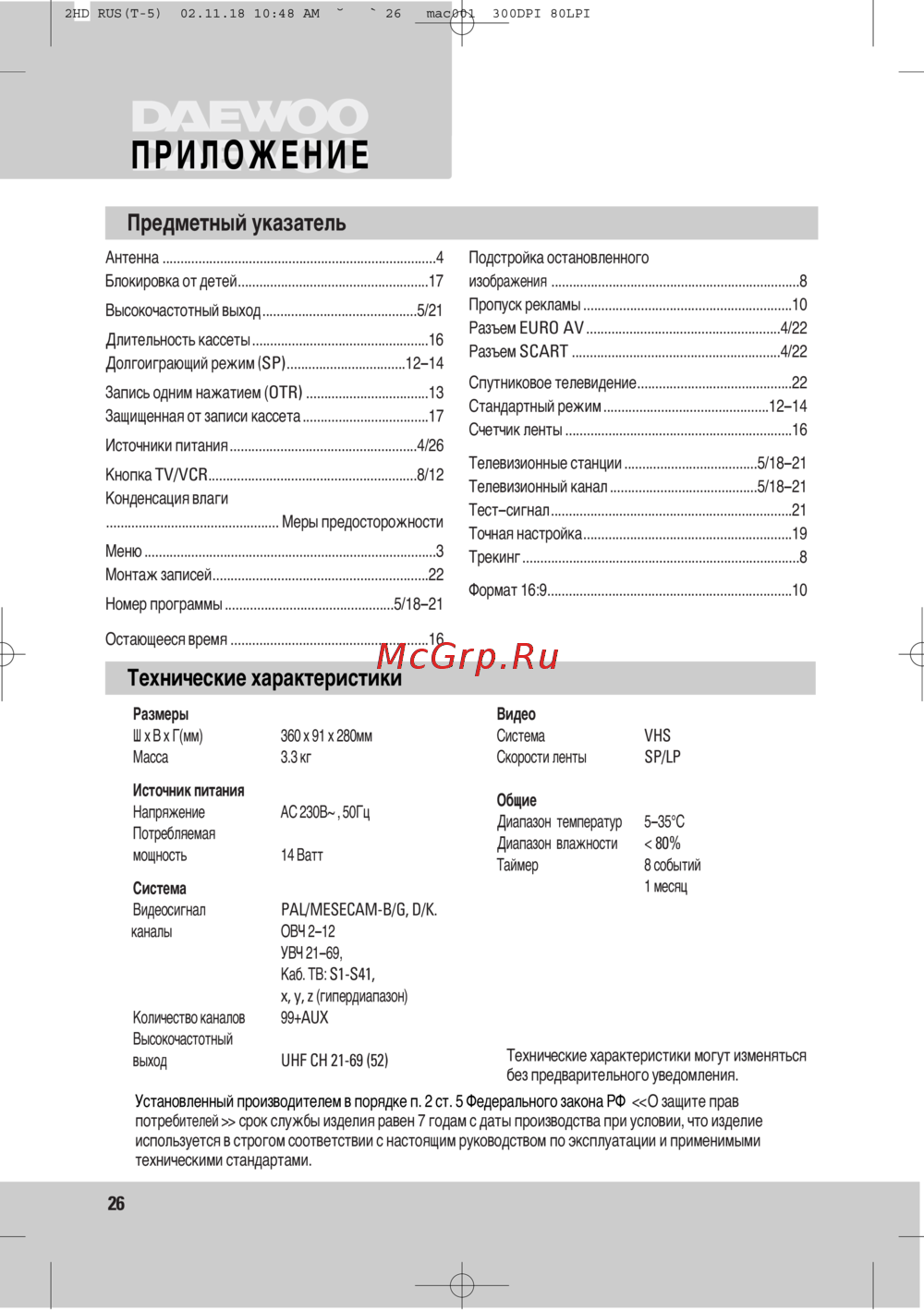Daewoo Electronics T290K — технические характеристики и особенности устройств [28/37]
