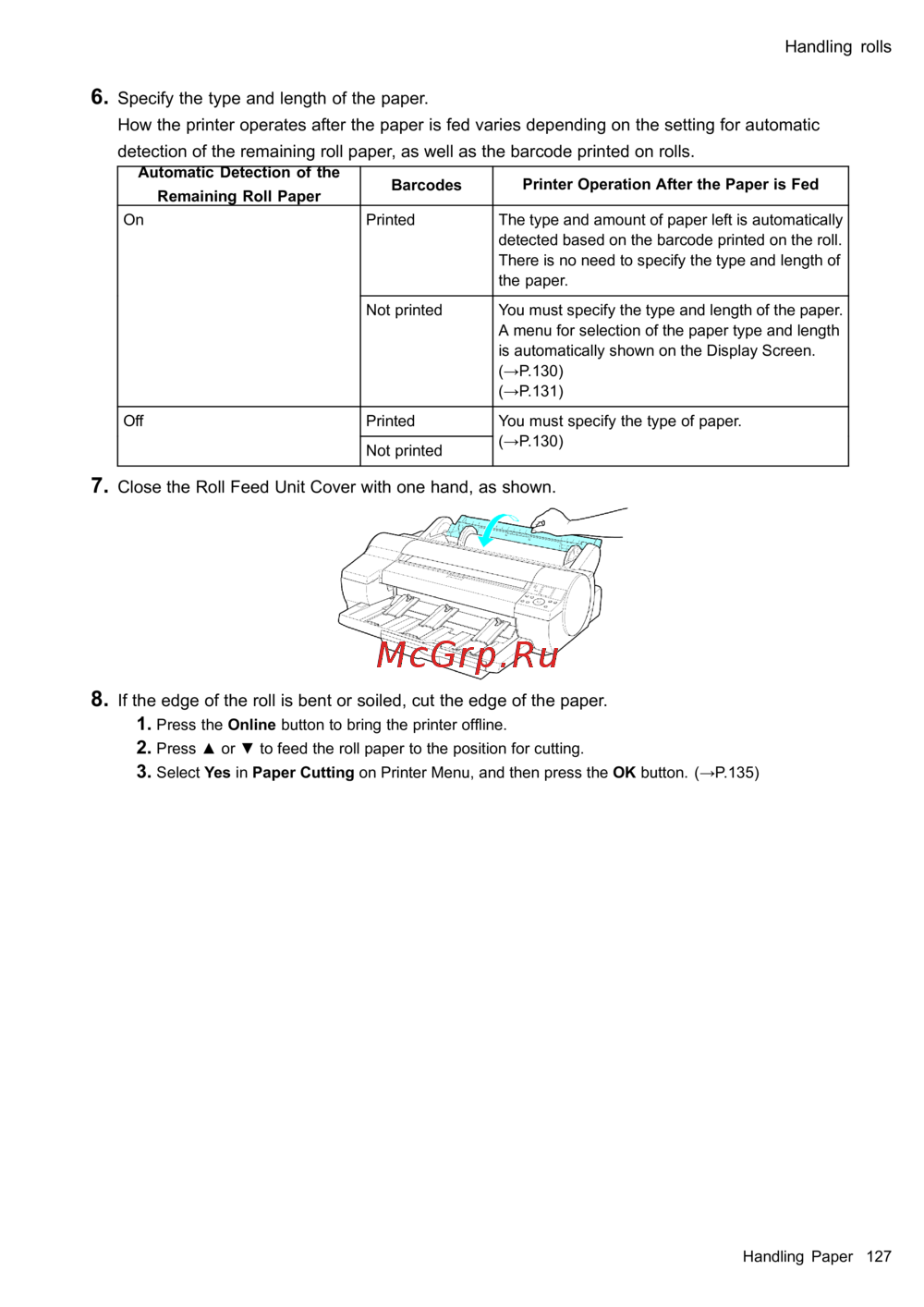 Canon imagePROGRAF iPF610 [141/746] Detection of the remaining roll paper as well as the barcode printed on rolls