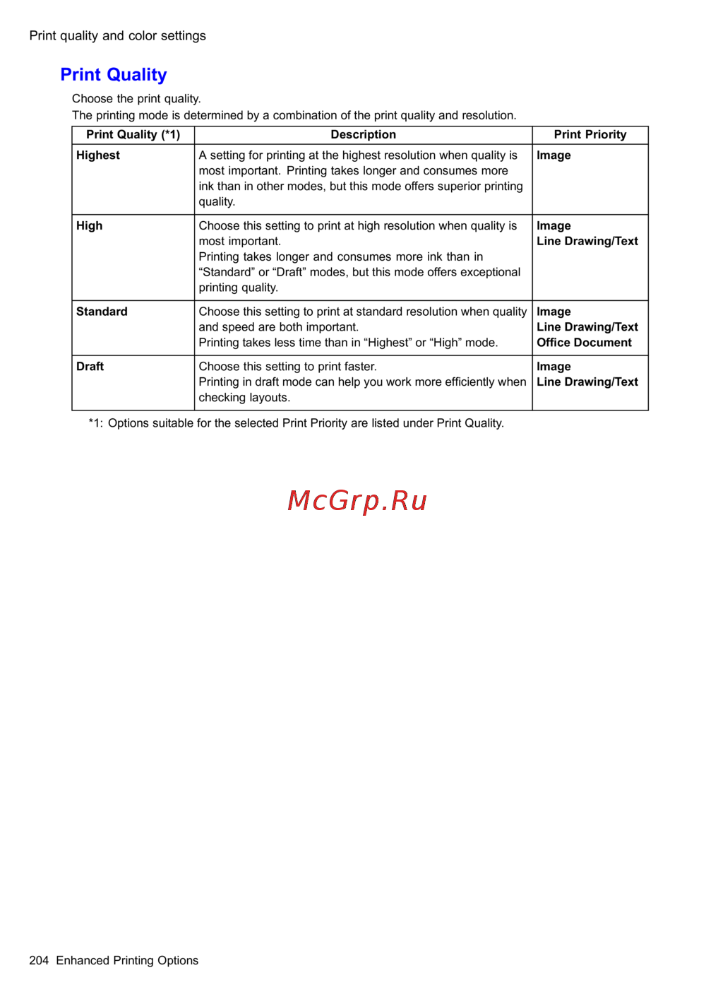 *1: Options suitable for the selected Print Priority are listed under Print Quality .
