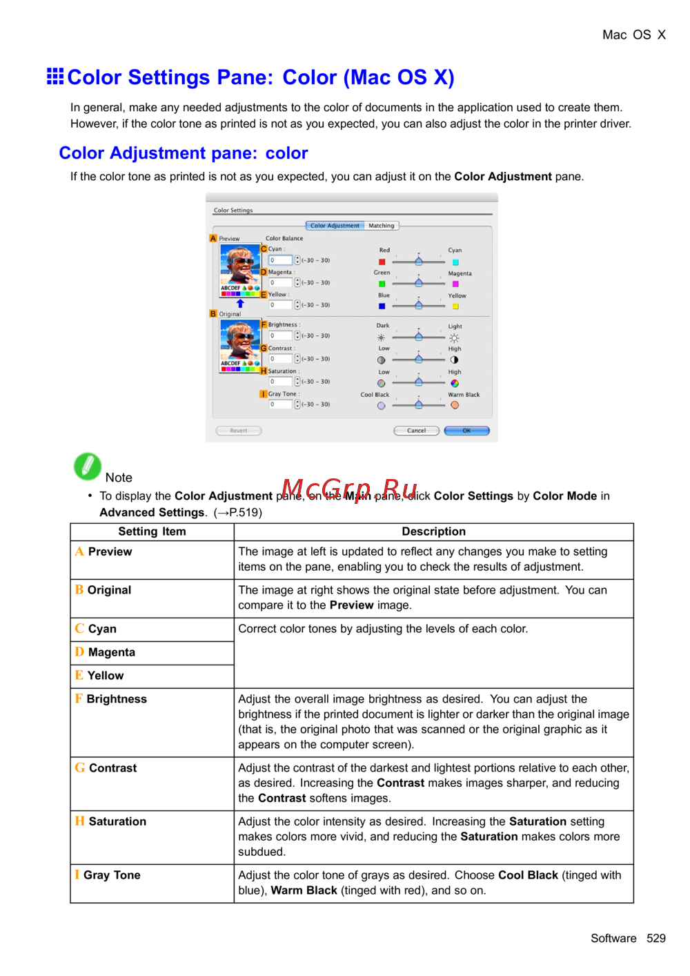 • T o display the Color Adjustment pane, on the Main pane, click Color Settings by Color Mode in
