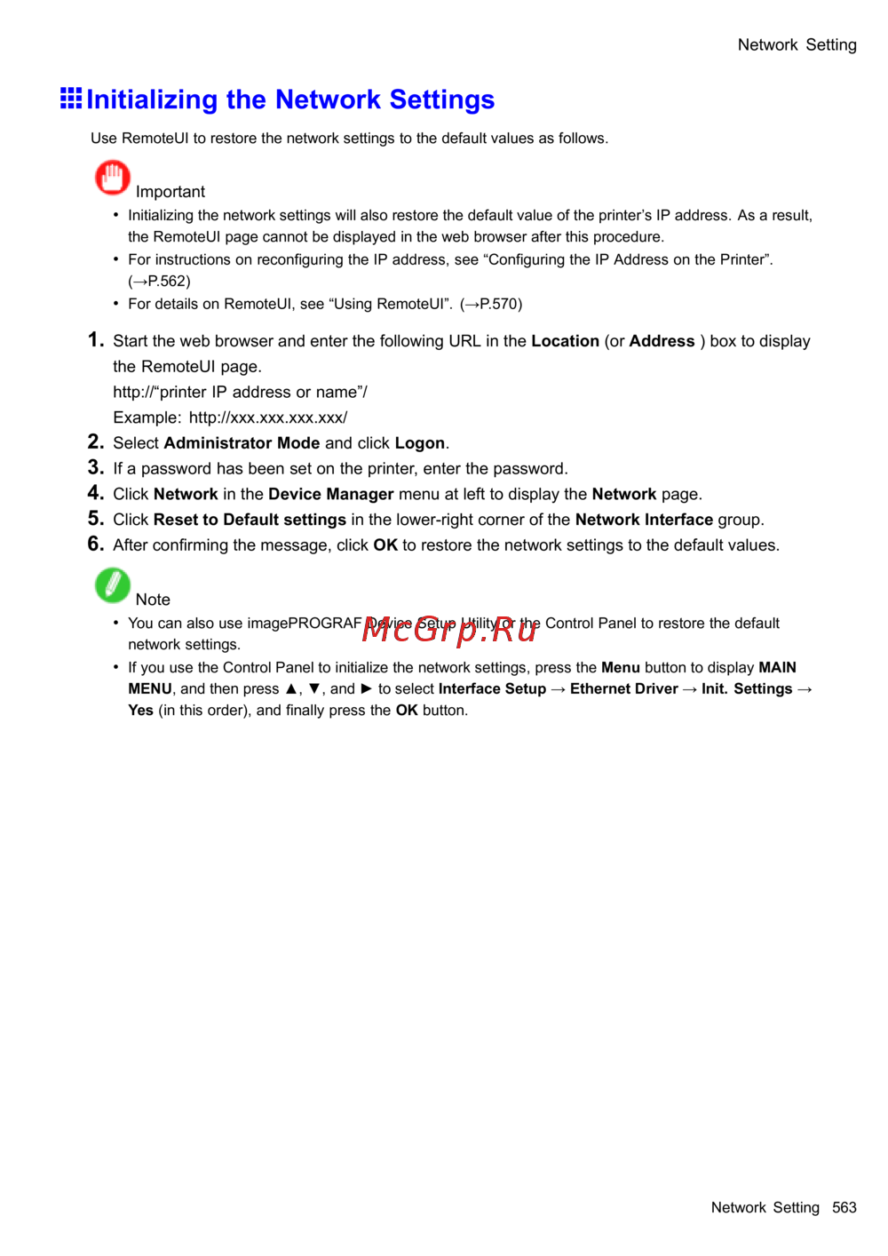 Canon imagePROGRAF iPF610 [577/746] Initializing the network settings