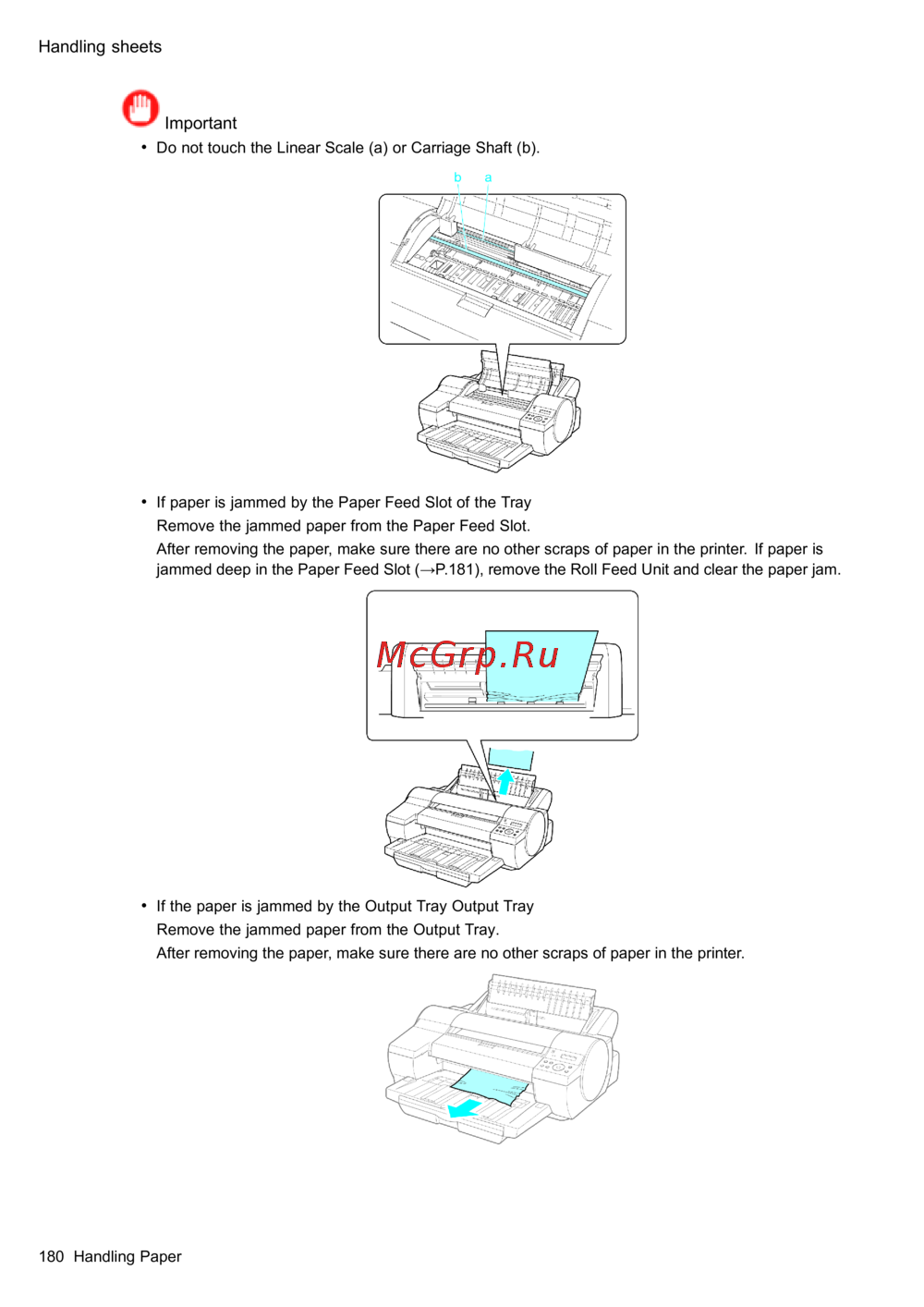 jammed deep in the Paper Feed Slot (→P .181), remove the Roll Feed Unit and clear the paper jam.